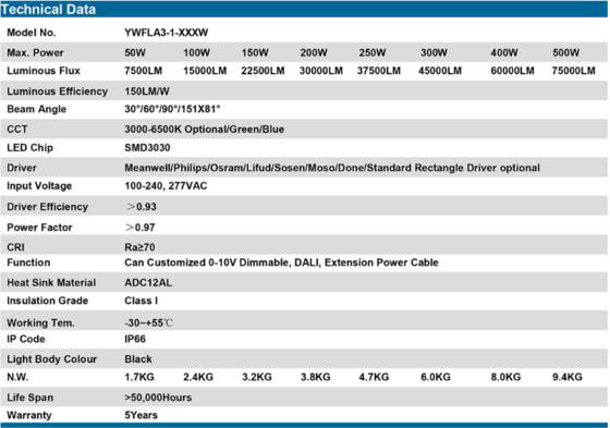Φωτιστικό πλημμύρας υψηλής ισχύος, χρησιμοποιώντας LED LUMILEDS SMD3030, ψύκτρα υψηλής μετάδοσης. Μπορεί να χρησιμοποιηθεί ευρέως σε ενεργοβόρα, μεγάλα