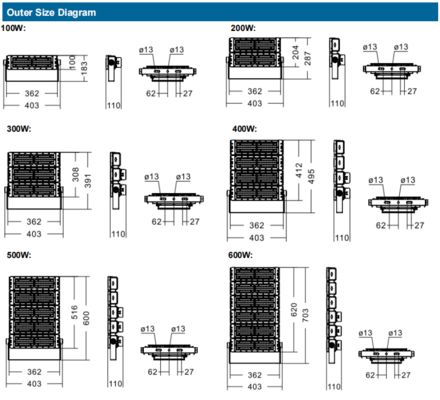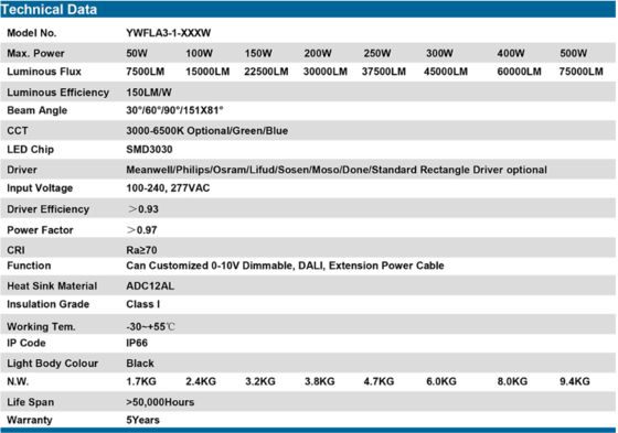 | Επιλογές Οδηγού | Meanwell/Philips/Osram/Lifud/Sosen/Moso/Done/Standard rectangular driver |